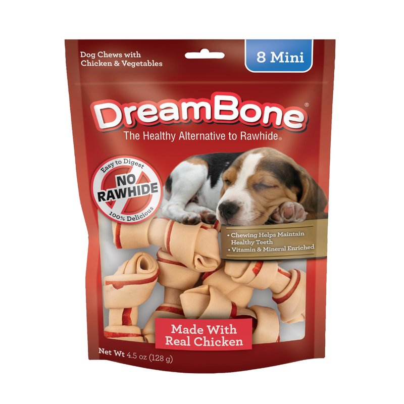 DreamBone Mini Chews, Made with Real Chicken and Vegetables, Rawhide Free Dog Chews, 8 Count
