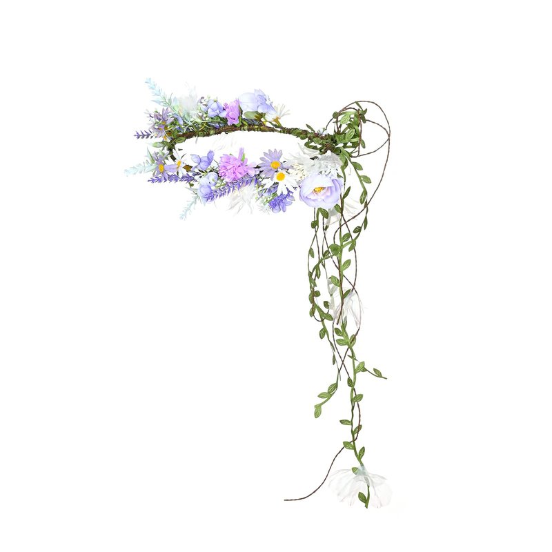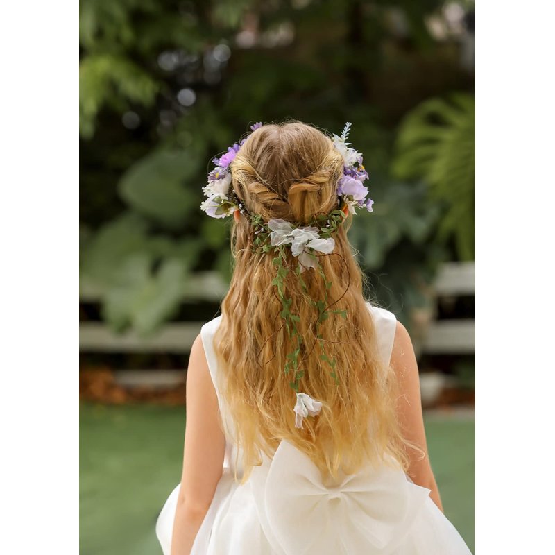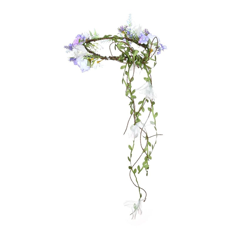 DreamLily Boho Wedding Floral Crown Woodland Fairy Crown Flower Girl rose Crown Hair Wreath with Tail DFS28 (Lavender)