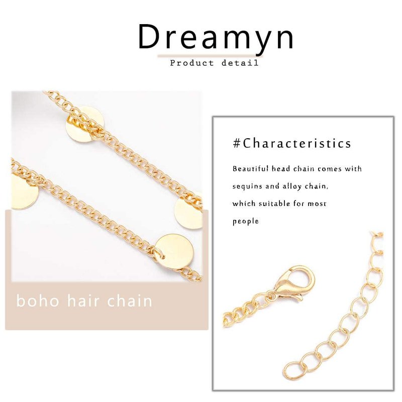 Dreamyn Vintage Coins Head Chain Gold Sequins Hair Jewelry Gypsy Cosume Hair Chain Jewelry for Women and Girls