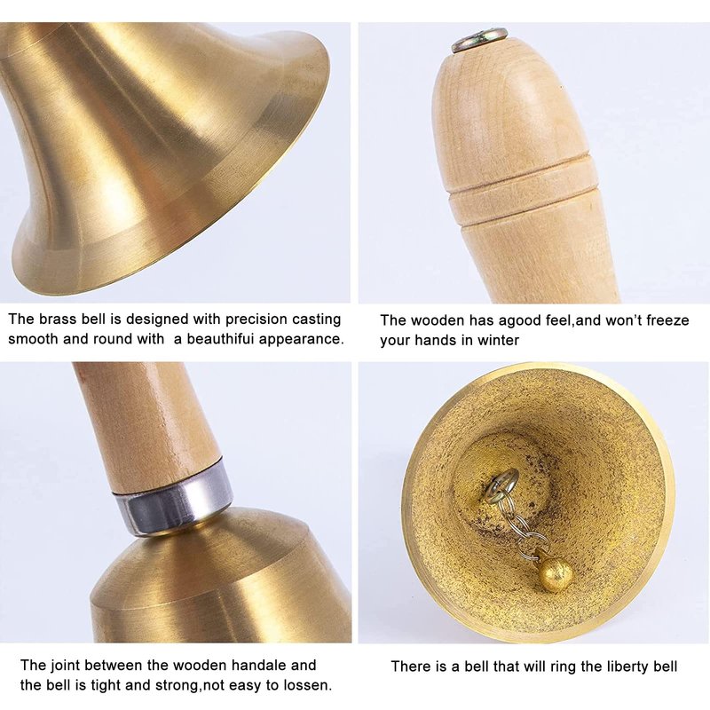 - đăClear and Loud SoundăHandbell has a loud and clear sound, you only need to gently shake the hand bells, it will make a crisp and loud sound, easy to use, can be used for a long time.