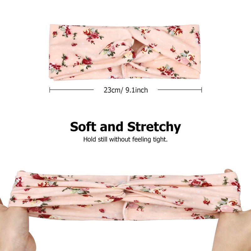DRESHOW 6 Pack Women Headband Boho Floal Style Criss Cross Head Wrap Elastic Hair Accessories