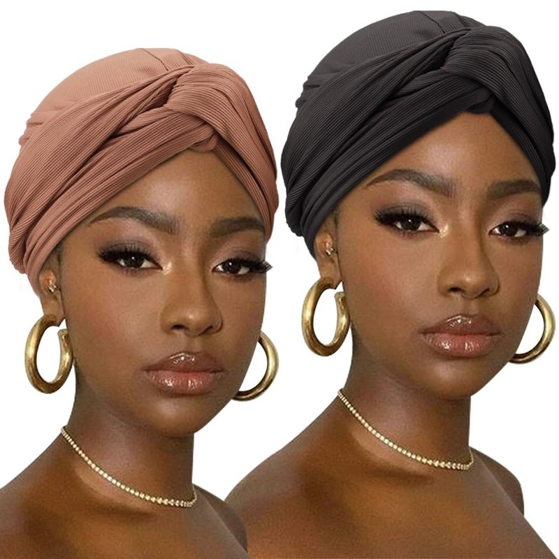DRESHOW African Turban for Women Knotted Hairwraps for Sleeping Headwraps Ribbed Turban Stretch Jersey Head Scarf for Black Women Chemo Cancer Cap