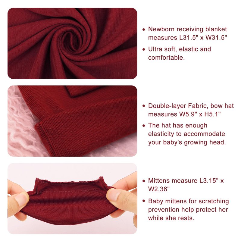 - Color: 1 Set Plain: Bow Hat + Mitten + Blanket (Burgundy)