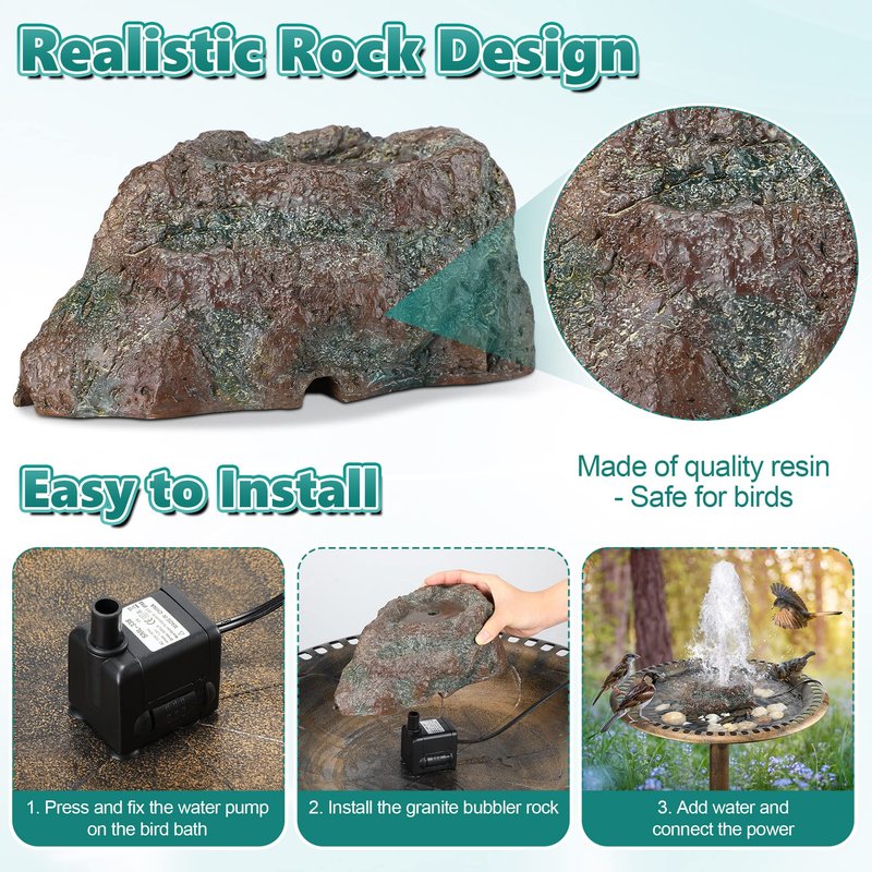 - Safe Materials: made of quality resin, bird bath decorative rock will not hurt your bird friends; Safe and friendly; And the color will not fade with long term use in the bird bath