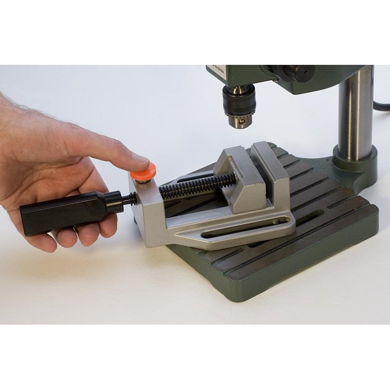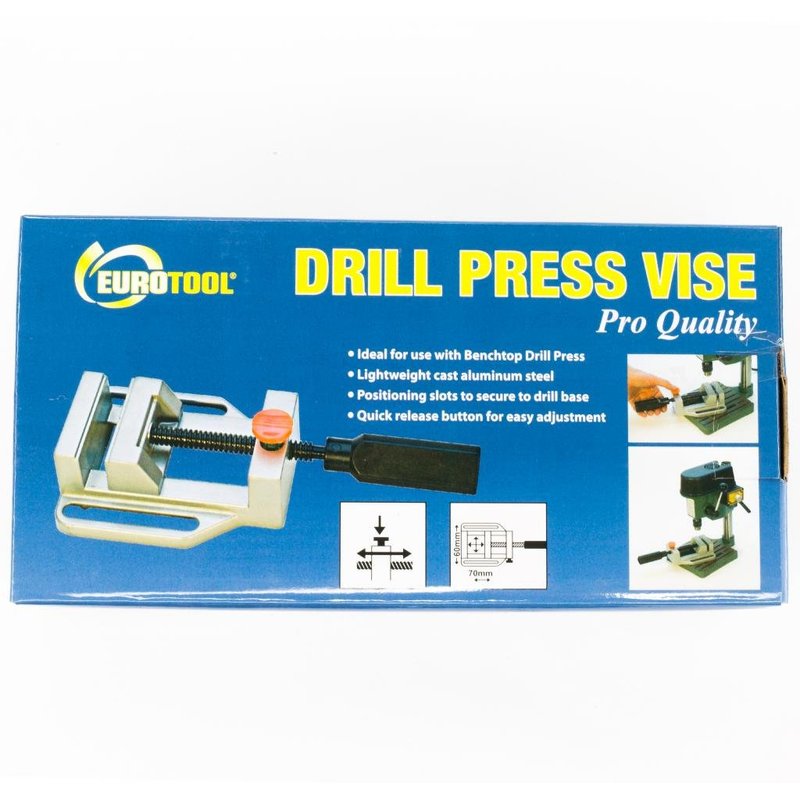 This handy aluminum Drill Press Vise is great for use with our Tabletop Drill Press (DRL-300.00). Vise has slots for optional attachment to drill press base. Its quick release feature permits rapid opening and closure of the jaws or use the handle to make smaller adjustments. Jaws are 2-9/16" wide (65mm) x 1-5/64" high (27mm). Maximum jaw opening is 2-3/4" (70mm). Overall dimensions 9-1/2" long x 4-1/2" wide.