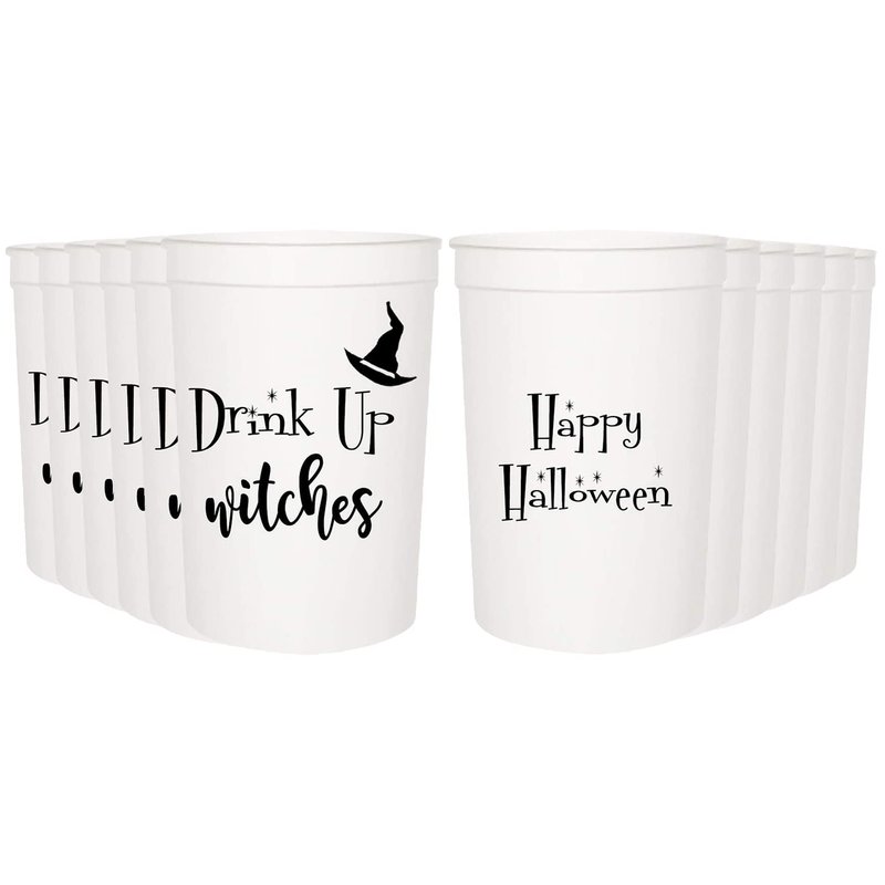 Drink Up Witches Halloween Cups - Set of 12 Halloween Disposable Cups 16oz Stadium Cups, Perfect for a Halloween Party, Halloween Favors, Trick or Treat Supplies Drink Up Witches Cups White