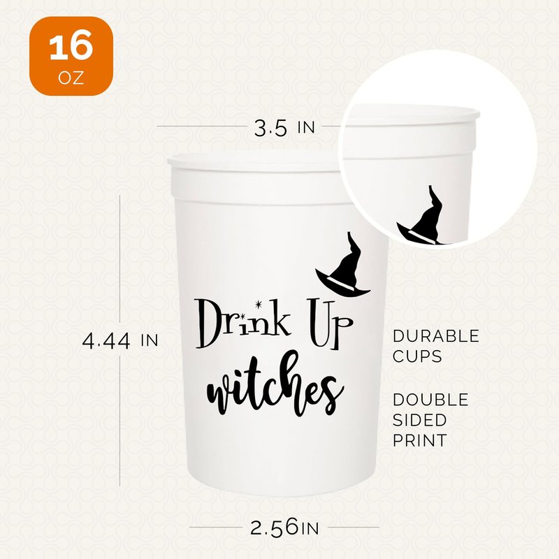 - PERFECT CHOICE- Each cup has a decorative "Drink Up Witches" On one side and "Happy Halloween" on the other!