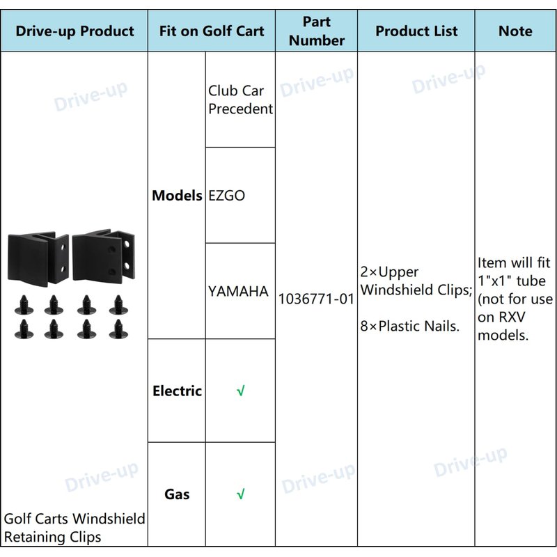 Fits Club Car Precedent Golf Cart,Secure with plastic nails.Item will fit 1"x1" tube ( Club Car,E-Z-GO,YAMAHA),Not for use on RXV models.