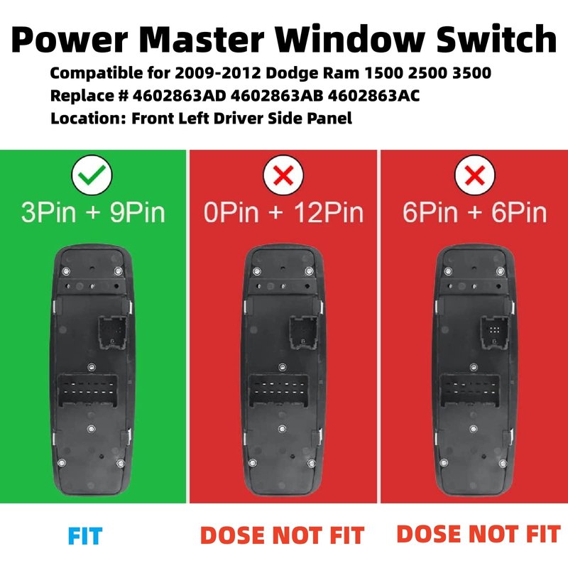 - đăPower Window SwitchăâăFITMENTăCompatible with 2009-2010 Dodge Ram 1500 Truck Quad Cab/ Crew Cab | 2010 Dodge Ram 2500 Truck Mega Cab/ Crew Cab | 2010 Dodge Ram 3500 Truck Mega Cab/ Crew Cab | 2011-2012 Ram 1500 Truck Quad Cab/ Crew Cab | 2011-2012 Ram 2500 Truck Mega Cab/ Crew Cab | 2011-2012 Ram 3500 Truck Mega Cab/ Crew Cab.