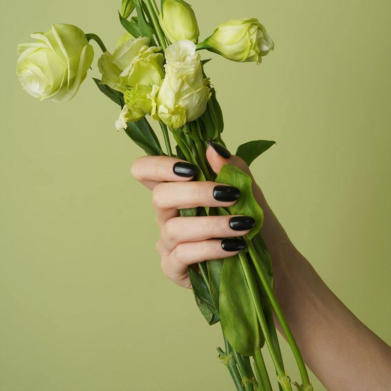 Drizzle Semi Cured Gel Nail Strips, Real Nail Polish Art Stickers (UV/LED Light Required), Glossy, Glitter, Solid Color, Full Nail Wraps Long Lasting, Nail Strips Decal for Women (Real Black)