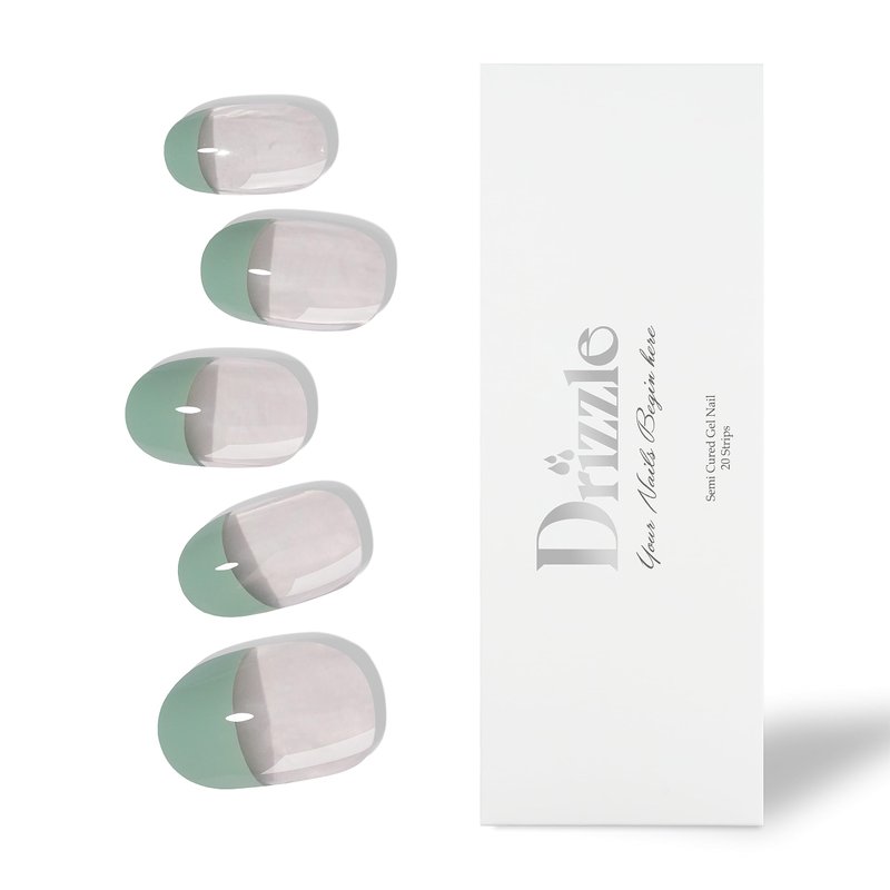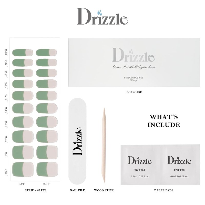 Drizzle Semi Cured Gel Nail Strips, Real Nail Polish Art Stickers (UV/LED Light Required), Glossy, Glitter, Solid Color, Full Nail Wraps Long Lasting Waterproof, Nail Strips Decal for Women (French)