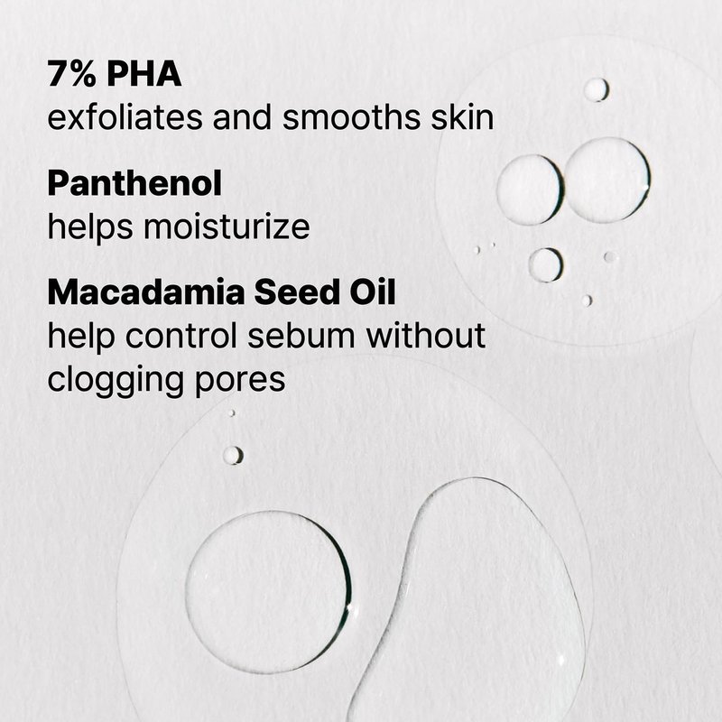 - What’s in it: PHA, a chemical exfoliator with a large molecular size that doesn’t penetrate as deeply into skin which makes this acid a better option for sensitive skin than AHAs and BHAs. Panthenol to help moisturize and Macadamia Seed Oil to help control sebum without clogging pores.