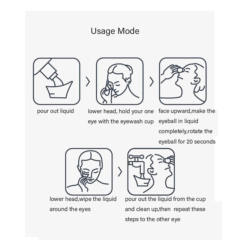 usage:Clean thoroughly before each use.Just fit the cup on eyes rim and dip eyes into it ,then keep your eyes rolling.Repeat this process and get your eyes thoroughly clean.