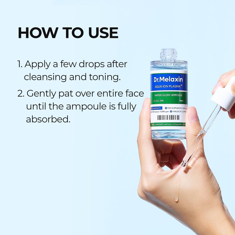 Dr.Melaxin Aqua Ion Plasma Water Glow Ampoule for Hydrating Face Moisturizer for Dry, Sensitive Skin | Moisturizing & Soothing Care, Korean Skincare, 50ml, 1.69 fl oz