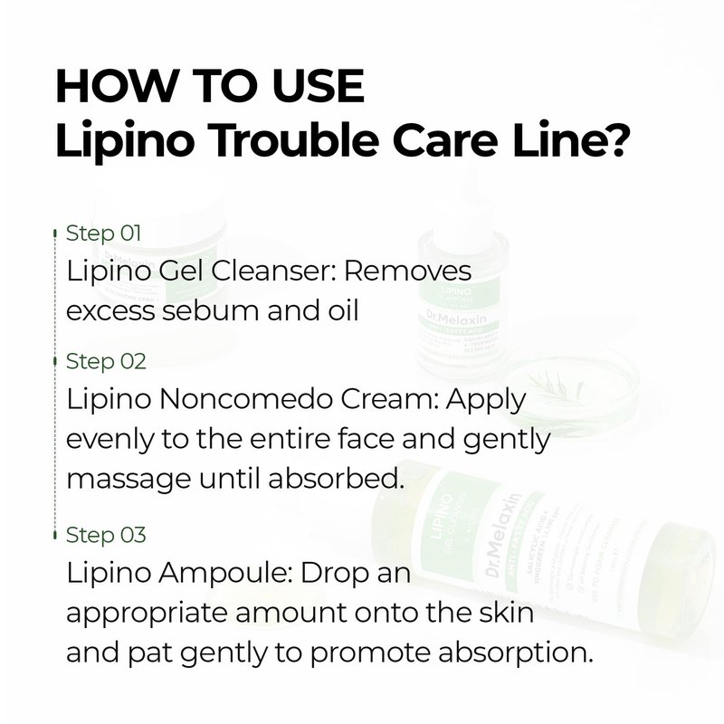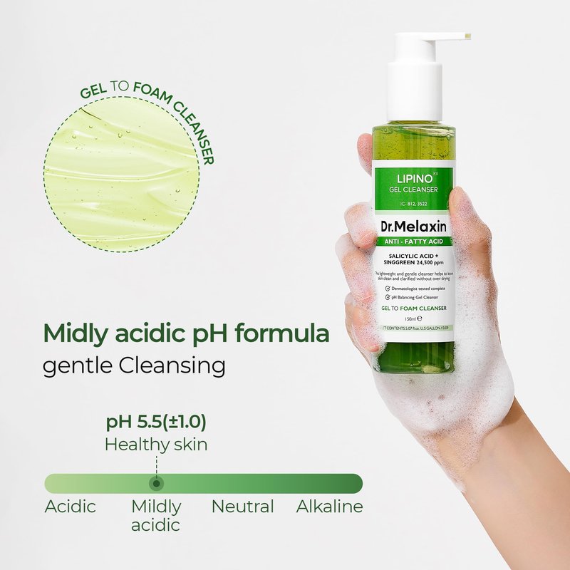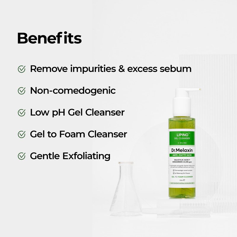 - Dr.Melaxin Lipino Gel Cleanser is a daily gel-to-foam cleanser specially designed for oily and acne-prone skin requiring meticulous care.