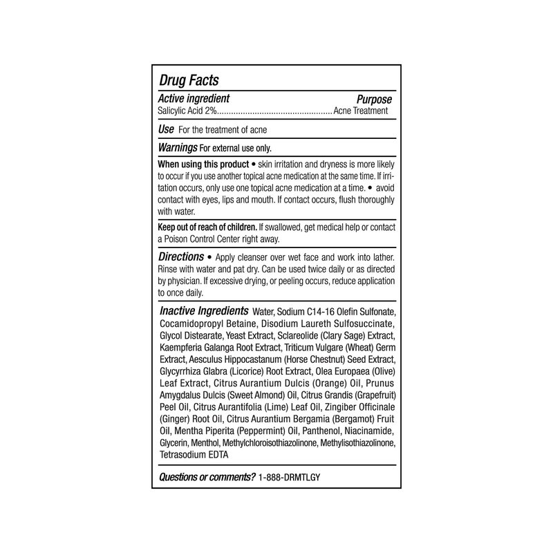 - Salicylic Acid 2%: This acne cleanser contains a potent ingredient clinically proven to treat the fundamental causes of acne.