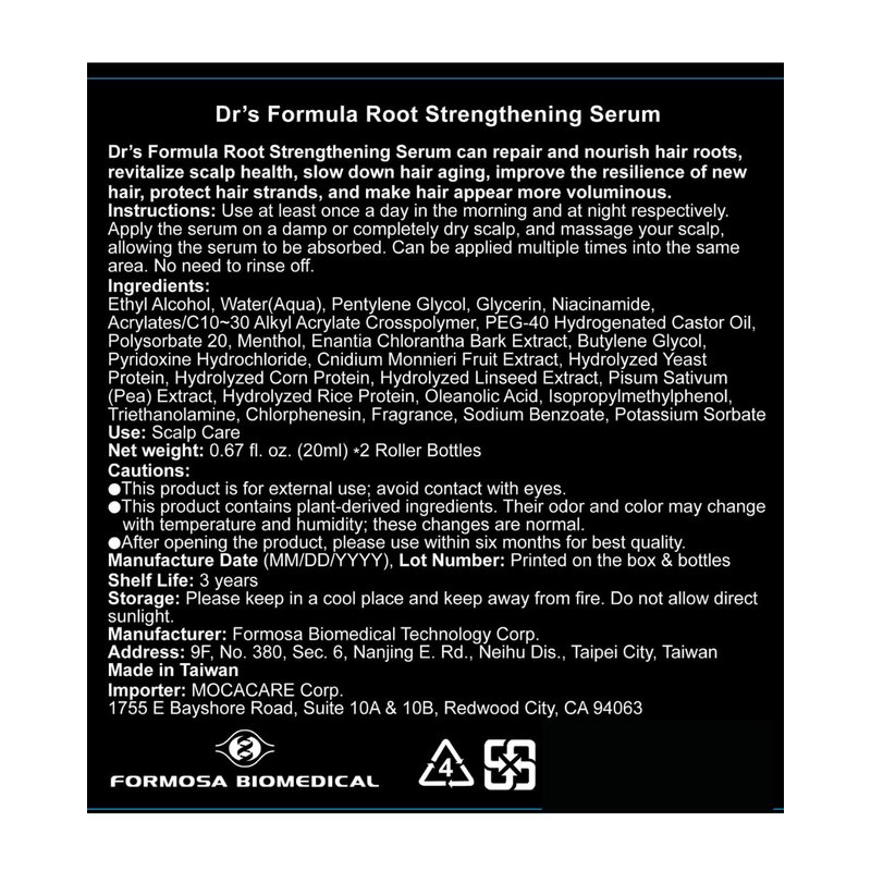 Dr's Formula Hair Root Strengthen Serum Scalp Care Essential Massage Roller Ball Nourishing Volume and Thicken Natural Ingredients Daily Use 0.67 fl oz(Pack of 2)