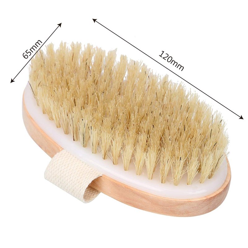 - NATURAL&ECO-FRIENDLY materials give you an at home SPA experience. The Angel Kiss dry brushing body brush is made of the finest materials. The natural boar bristles are firm and effective to exfoliate and soften skin; the handle is made of smooth polished real wood, oval shaped and fits in your palm for better control; cotton strap offers comfortable and easy grip.