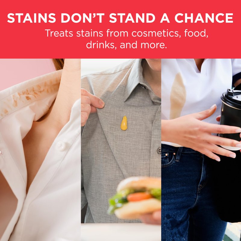 - Stain Solution: Remove heavy-duty and hard-to-treat stains from your clothes instantly, like food and drinks like chocolate, coffee and tea, red wine, makeup, grass and mud, grease, baby-related staining, and more.