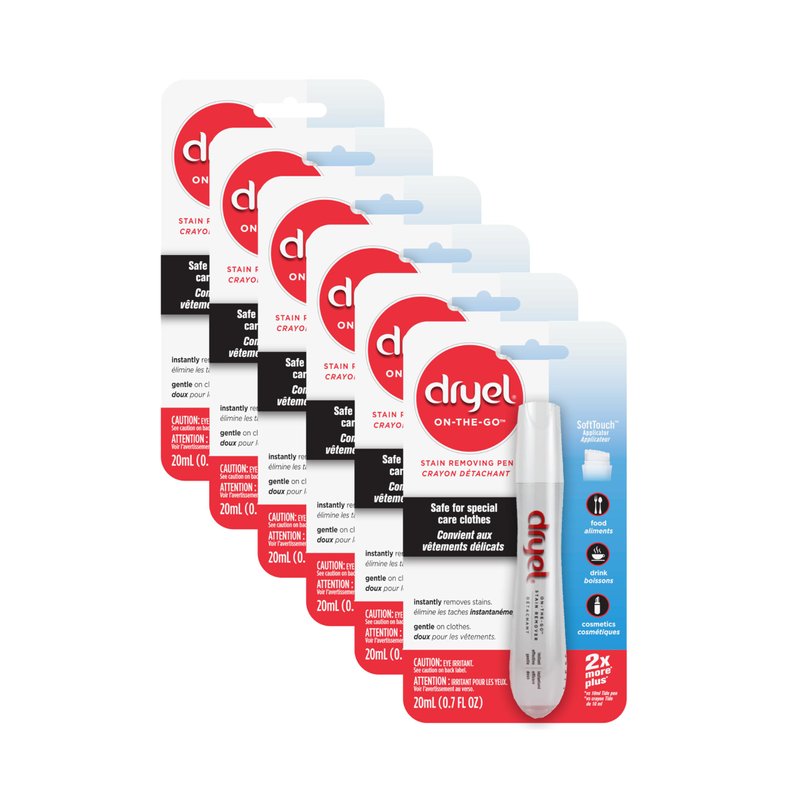 Dryel On-The-Go Stain Remover Pen with Soft Touch Applicator Scrubber, Instantly Removes Tough Stains from Clothing, 6-Pack