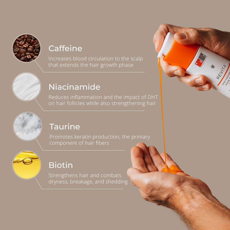 - Revita Hair Density Shampoo: Revita is created with top dermatologists and formulated with key and effective ingredients that act against breakage and excess shedding while supporting thicker, fuller, healthier-looking hair. By combining ingredients like DHT Blocker caffeine, Biotin, antioxidants, hydrating molecules, and amino acids, Revita delivers an effective shampoo to support hair density and help increase volume.
