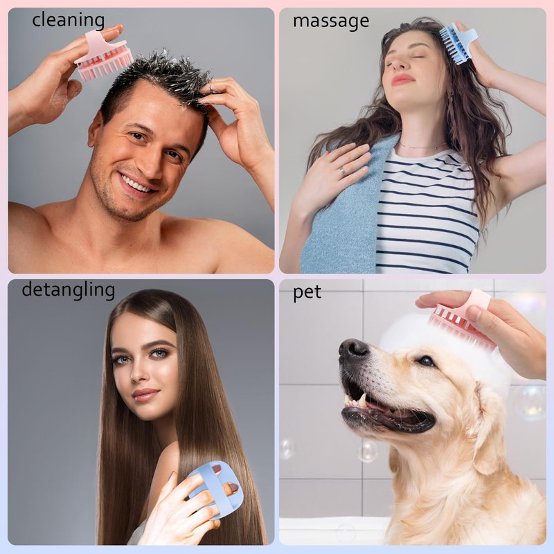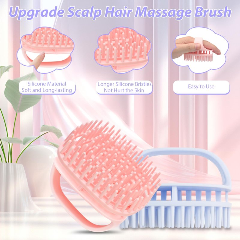 - DOUBLE-LAYER SILICONE DESIGN: This set of blue and pink scalp massage tool is made of double-layered silicone material, the unique design makes it fit your head better, and is softer and more comfortable while giving your hair and scalp enough massage strength.