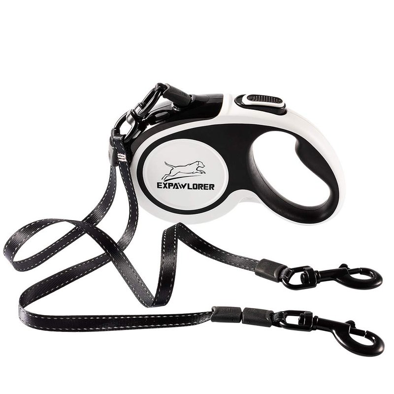 Dual Retractable Dog Leash - Double-Head Lockable Extendable Pet Leash - 16ft Reflective Nylon Ribbon - 360¡ã Tangle-Free for Two Dogs Walking Training