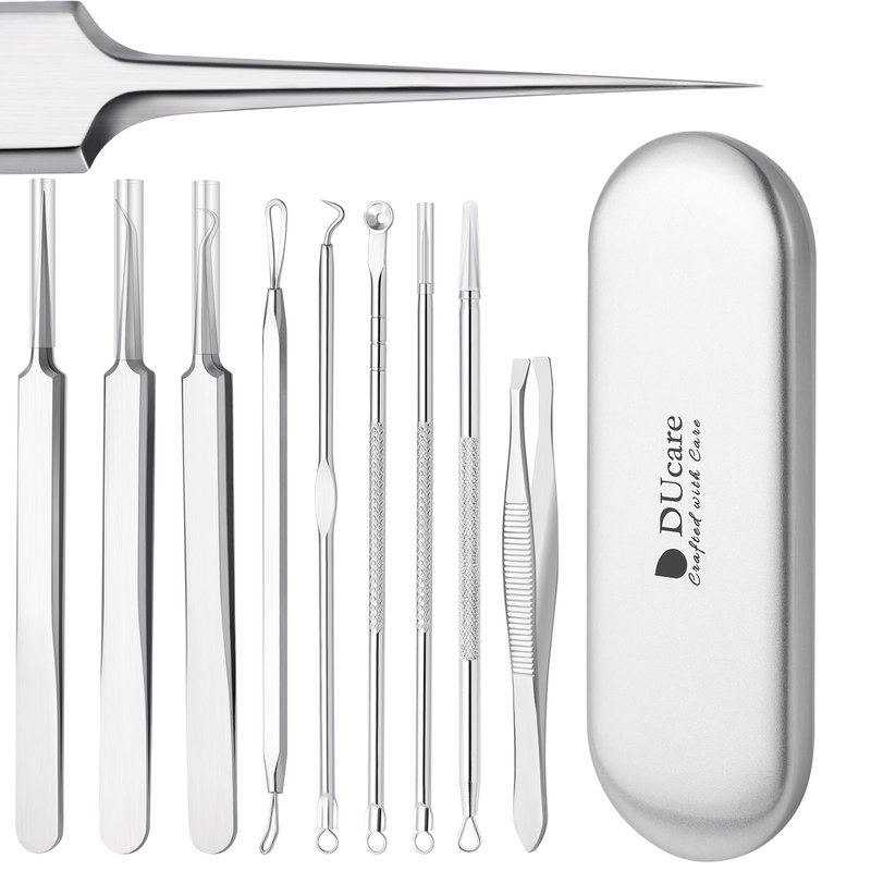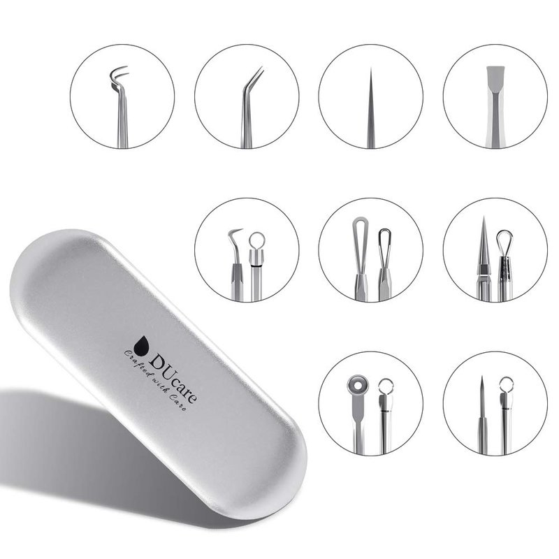DUcare Blackhead Remover Tools 9 Pcs Pimple Popper Tool Kit with Metal Case for Pimples, Blackheads, Zit Removing, Forehead