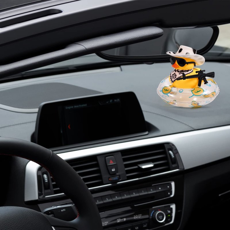 - The Fun of DIY: The cowboy duck car accessories need to be assembled, which provide you the joyful experience of DIY. Put on the scarf and fix the glasses with tape, put the hat on the duck's head, put the swimming ring under the rubber duck, and then fix the duck with double-sided tape.