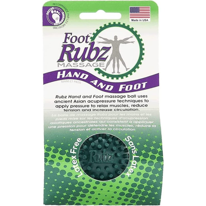 - Massage Ball: The Rubz Hand & Foot Massager is a simple, effective and easy way to relieve pain & tension in your feet, hands, and back. Great for plantar fasciitis, runners, people who work on their feet, and more.