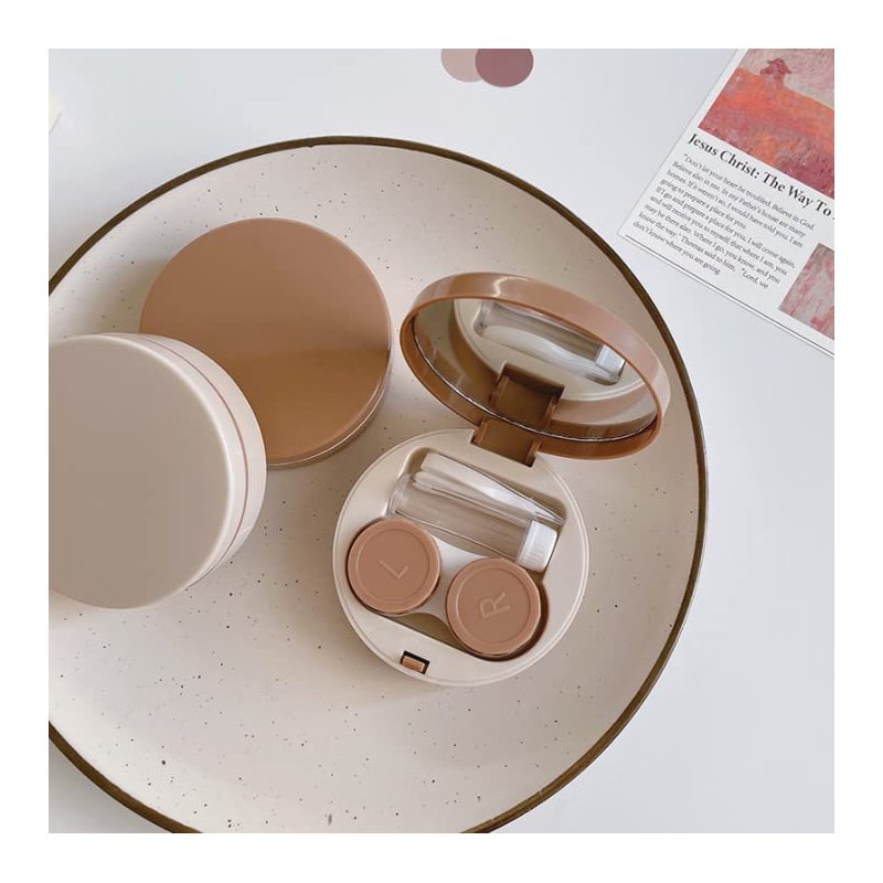 - Unisex Design: Solid white and khaki color contact lens case with push lock closure for both men and women.