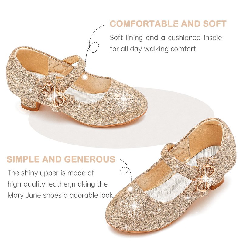 - MULTI OCCASION WEAR:This toddler girl dress shoes can be matched with dresses for any occasion.Gold is very suitable for birthday parties or school performances on special occasions