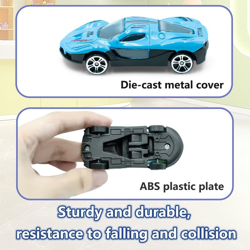 - 【Easy to Play and Safe】: The wheels of these race cars roll smoothly for push-around play. Designed with smooth surfaces and curved corners, they are safe for children's hands. The secure construction ensures that the metal case remains firmly attached to the bottom plate, preventing the cars from coming apart during playtime.