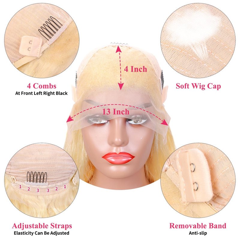 - Seamless elegance: Blonde lace front wig human hair,13x4 transparent lace, 22.5 inch medium cap with 4 combs, 2 adjustable elastic bands, and 1 removable strap,it can help you fixed on your head. Seamlessly blending into your skin for an authentic and elegant appearance.