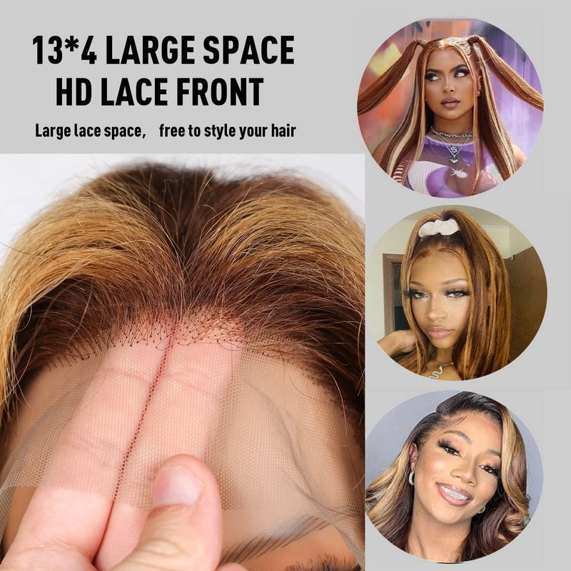 - 【Ombre Lace Front Wig Human Hair Texture】Highlight 4/27 Lace Front Wigs Human Hair Body Wave, Pre Plucked With Baby Hair Natural Hairline, Can Be Dyed,Straightened, Curled And Styled As Your Like.