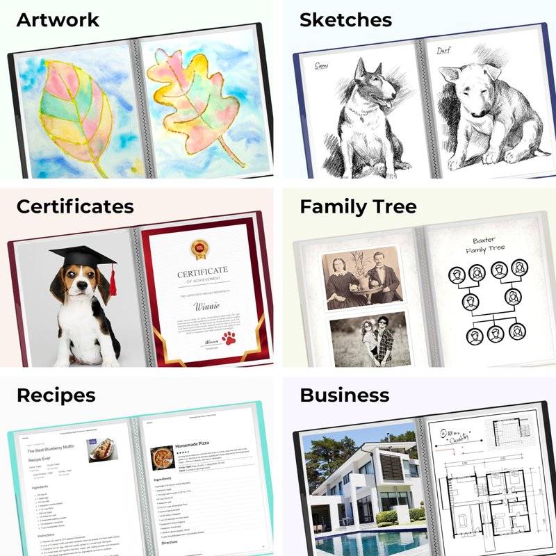- Many Uses: Document binder, document organizer for diploma, licenses, family tree, photo binder, stencils, art portfolio, awards, modeling portfolio book, art display book, office binder.