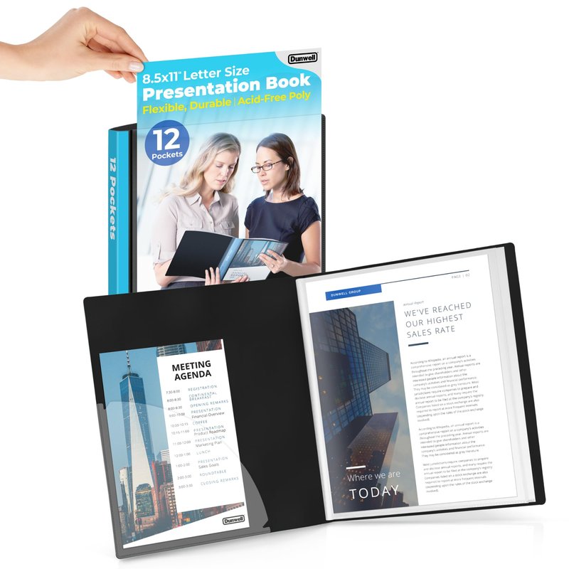 Dunwell Binder with Plastic Sleeves 12-Pocket, Black Presentation Book, 8.5 x 11 Portfolio Folder with Clear Sheet Protectors, Displays 24-Page Documents, Certificates, Important Papers