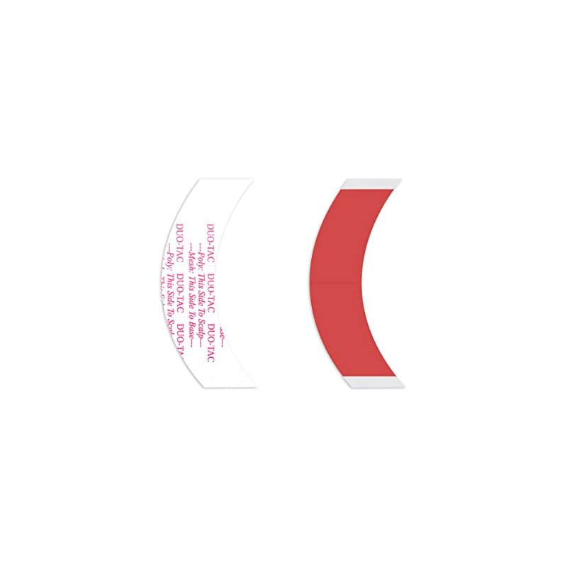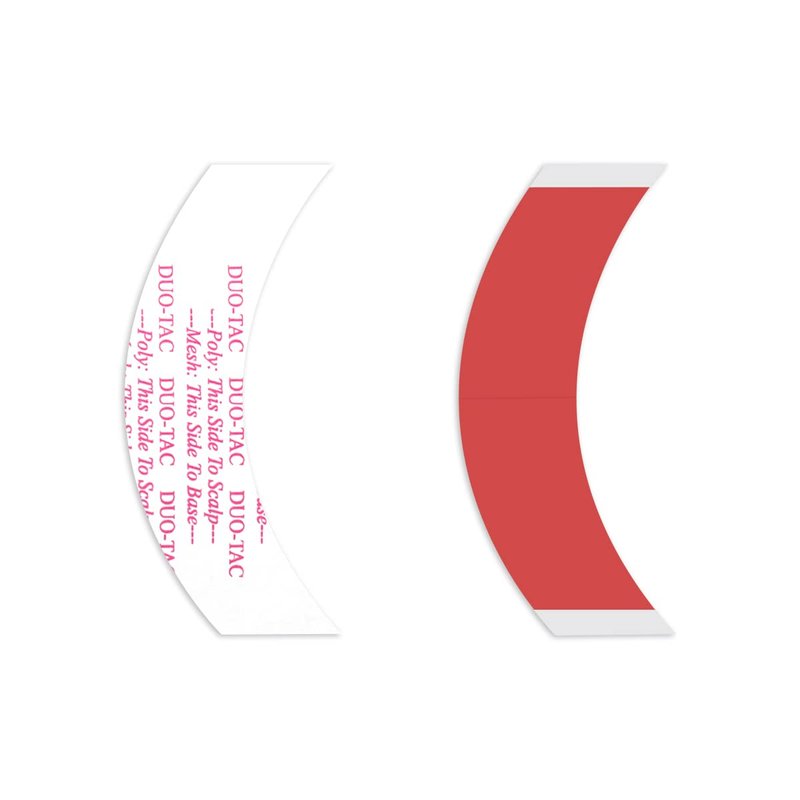 Systems: All Shine: Dull (lace-facing side) Gentleness: Skin safe Residue: Medium Liner: Printed white & red (tape is clear) Carrier: Stiff Duo-Tac Thickness: 15.5 mil Maximum Wear: 2-3 Weeks Details Walker Tape’s Duo-Tac maximum wear (2-3 weeks) tape is designed for universal use on all types of hair systems. Not only is it optimized for poly systems, but for mesh systems as well. Along with a low residue and easy cleanup, it is a great option for users. Keep the product away from heat, humidity, and light. Store in a well-ventilated, cool, dark, dry, room-temperature controlled environment (60-80°F). Seal bags completely. With proper storage, our tapes have a shelf life of up to one year. Directions Prep for Install Shampoo the hair system and bio hair with Bond Breaker Shampoo and let dry. Apply 99% Alcohol to the scalp and the base of the system to prepare for optimal adhesion. Allow to completely evaporate. Apply Max Hold Sport or Scalp Protector to the scalp to enhance the tape’s bond strength and shield against skin irritation. Contours & Minis Peel off the color liner that is scored down the middle. Place the adhesive side toward the unit. Avoid touching the adhesive. Place the tape contour where desired on the hair system. Repeat as needed. When ready to apply to the scalp, peel off the remaining white liner pieces. For easier application, spray Just-Rite Positioning Spray over the adhesive area. The amount sprayed will determine the amount of time available to adjust the unit (the more you spray, the longer you have until the adhesive grabs). Press the hair system firmly onto the scalp, taking care not to move it in the process.