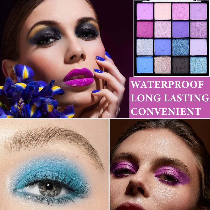 DuoZeng 16 Colors Glitter Purple Eyeshadow Palette,Shimmer Matte Eyeshadow Makeup Palette Pallet Highly Pigmented Waterproof Smokey Powder Pressed Blue Eye Shadow Palette