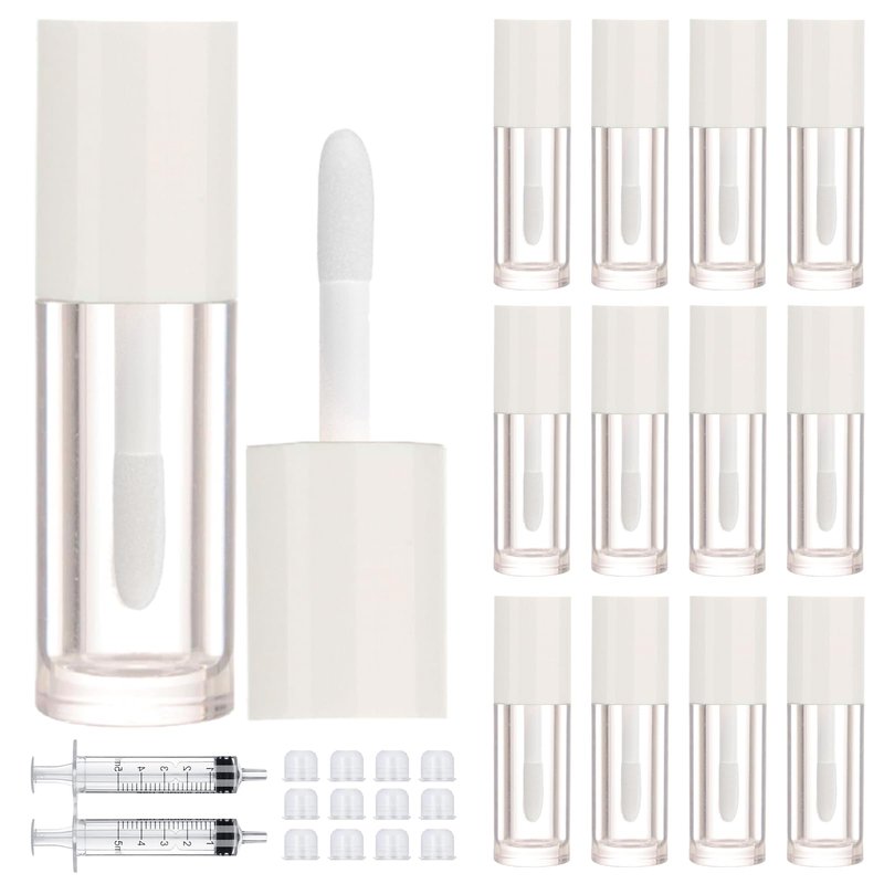 DupakSYS 12pcs 2.5ml Empty Lip Gloss Tubes with Wand Cute Lip Gloss Containers Refillable Cosmetic Lip Balm Tubes Lip Gloss Supplies Kit + 2pcs Syringes (White)