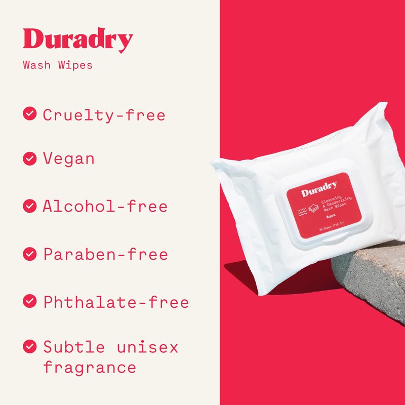 - FOR ALL SKIN TYPES - Duradry Wash Wipes are safe for sensitive, smelly body parts. Apply our wipes to your hands, feet, underarms, back, and other sweaty areas