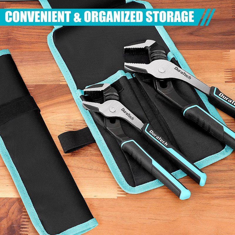 DURATECH 2-Piece Groove Joint Pliers Set with Rolling Pouch, 10 & 8-Inch Adjustable Water Pump Pliers, Straight Jaw Tongue and Groove Pliers for Home Repair, Gripping, Pipe & Fittings