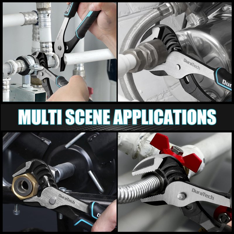 - High-Strength Materials - DURATECH Groove Joint Pliers Set is made of high quality steel which has been machined to make it durable and hardened to handle even the toughest conditions. Ideal for plumbers and DIY homeowners: clamp, pull, tighten and loosen nuts, bolts, pipes and fittings.