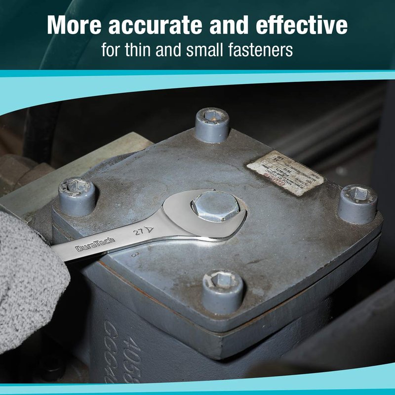 DURATECH Super-Thin Open End Wrench Set, Metric, 8-Piece, Including 5.5, 7, 8, 9, 10, 11, 12, 13, 14, 17, 19, 21, 22, 23, 24, 27 mm, Slim Spanner Set with Rolling Pouch