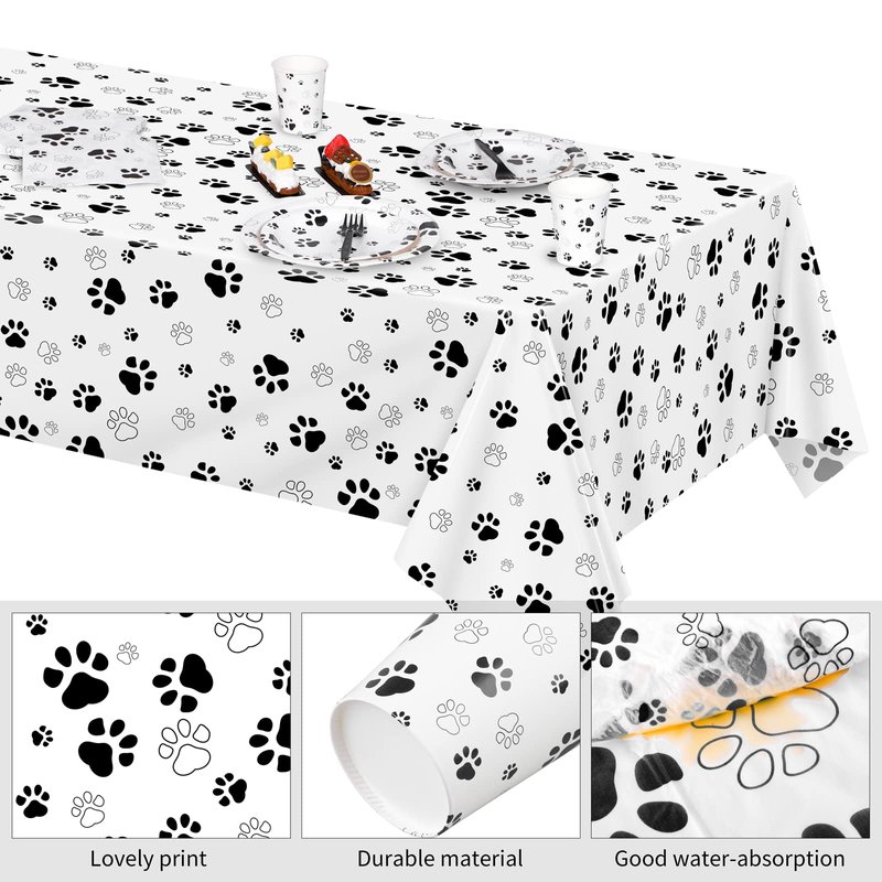 - Cute pattern: our products are printed with cute dog patterns, clever to attract people's interests; the disposable tablecloth is made of durable plastic that is waterproof and oilproof, convenient for you to tidy up after a party