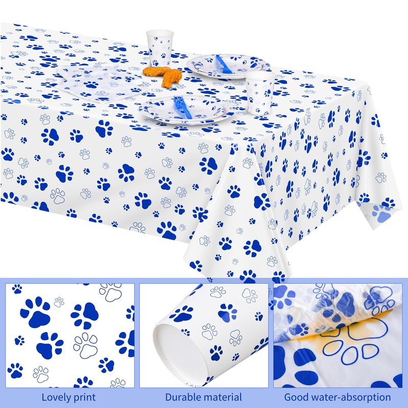 - Cute pattern: our products are printed with cute dog patterns, clever to attract people's interests; the disposable tablecloth is made of durable plastic that is waterproof and oilproof, convenient for you to tidy up after a party