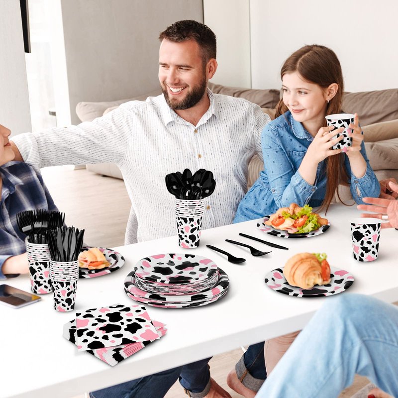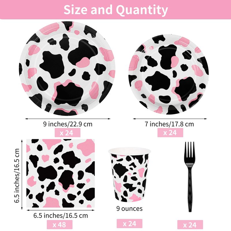 - Package content: you will receive 48 pieces of pink cow party plates, 24 pieces of cups, 48 pieces of napkins, 24 pieces of forks, 144 pieces in total; sufficient for your daily use needs and cow print party supplies