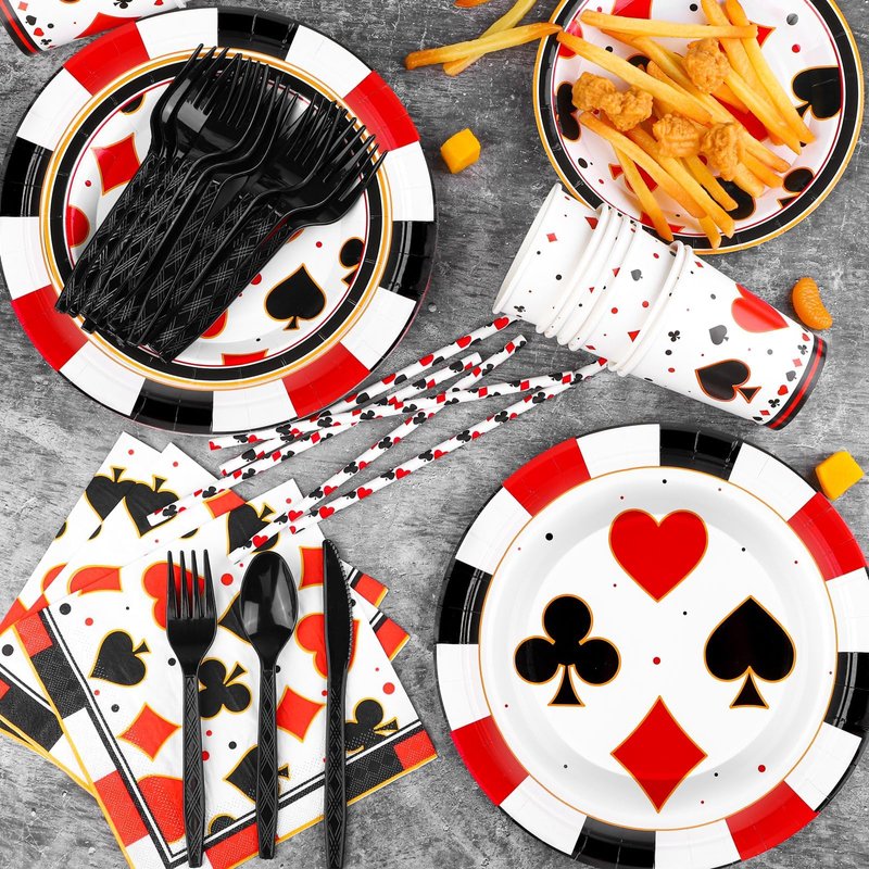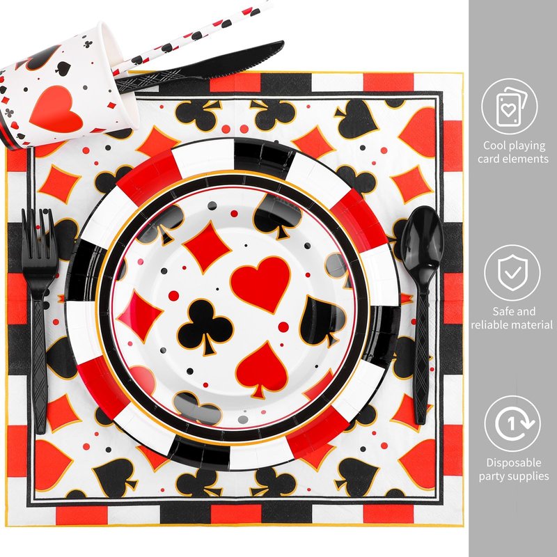 - High quality material: these casino party tableweares are made of safe paper material, thick and durable, environmentally-friendly and non-toxic, napkins are highly absorbent and soft, excellent tableware for party