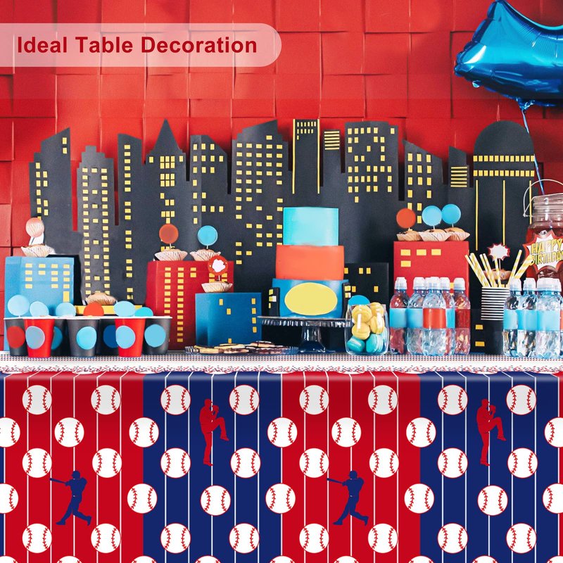 - Unique design: the patterns of baseball table covers are designed by ourselves, simple but wonderful, the table cloths use red and blue,and there are baseballs and someone who plays baseball in the patterns, which are in line with the theme