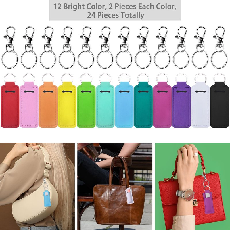 - Colorful chapstick holder set: package include 24 pieces bright color chapstick lip balm lipstick holder and 24 pieces metal clip cords, thoughtful chapstick holder keychain set for you to DIY and hang your purse, bag or backpack